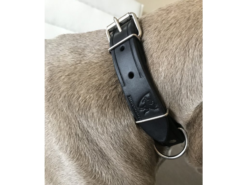 -hrubá odolná koža, z ktorej je obojok vyrobený chráni krk pred možným útokom napr. (iného psa na oblasť krku)